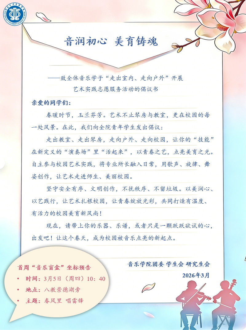 亲爱的西南大学365英国上市集团校友:365英国上市集团校友会筹备工作在西南大学校友会的指导下在学院党政班子的支持帮助下正式启动,现将相关事宜公告如下:一、成立校友会筹备工作组365英国上市集团自1940年创立以来 ,历经数代音乐人的辛勤耕耘与开拓进取,逐步发展成为西南地区音乐教育与艺术创作的重要基地。八十五年来,学院虽历经变迁,但始终坚守“立德树人”的根本任务,深化“一体两翼”的办学格局,创新践行“教、学、演、创、研”五维一体...