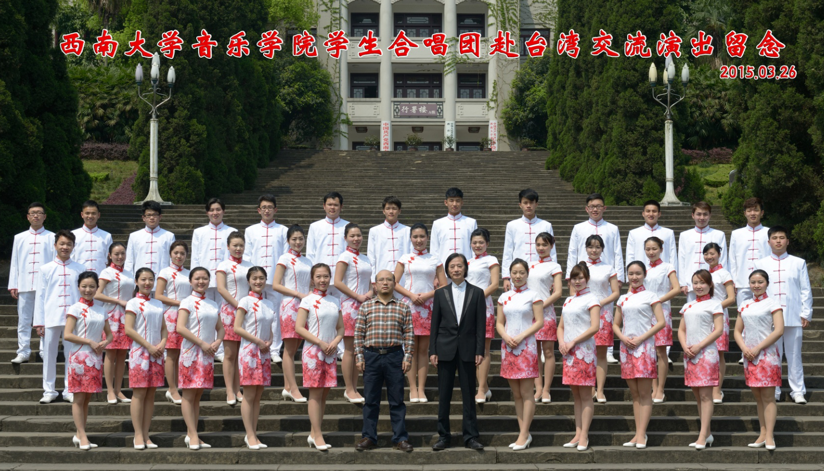 指挥:左倩 西南大学365英国上市集团民族合唱团指挥,交响乐团指挥,圣彼得堡国立文化艺术大学音乐博士,中国音乐家协会会员,重庆市音乐家协会会员,重庆市合唱协会会员,重庆北碚区音乐家协会理事,俄罗斯《彼得巴沃斯科国际大赛》银奖获得者,在俄罗斯求学阶段,曾执棒圣彼得堡国立文化艺术大学交响乐团进行多次大型演出。执棒重庆市青年交响乐团进行多次《高雅艺术进校园》演出活动及各类受邀的社会活动。多次受重庆市教委邀请,进行指挥专题讲座及培训,多次指挥合唱团及交响乐团参加重庆市委,重庆市宣传部组织的演出活动以及国内各类艺术交流活动。