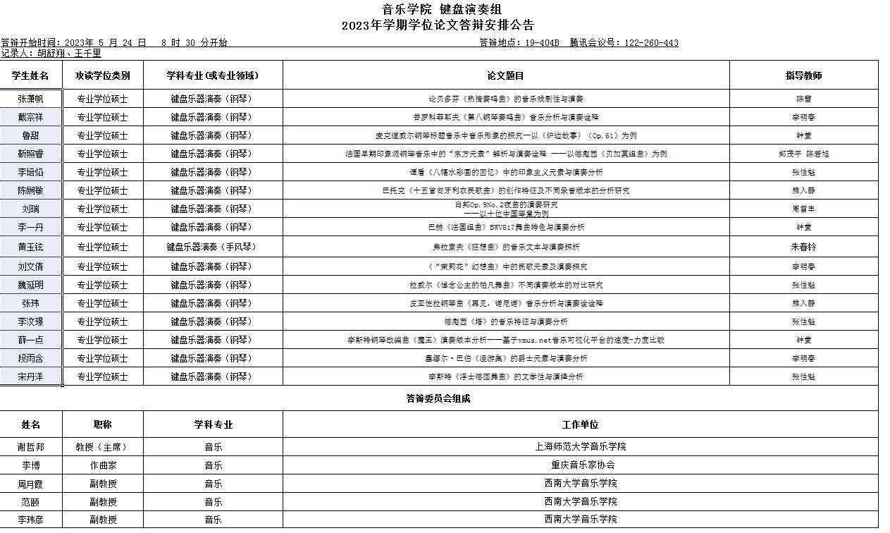 2023年西南大365英国上市集团春季硕士研究生答辩安排——键盘演奏组