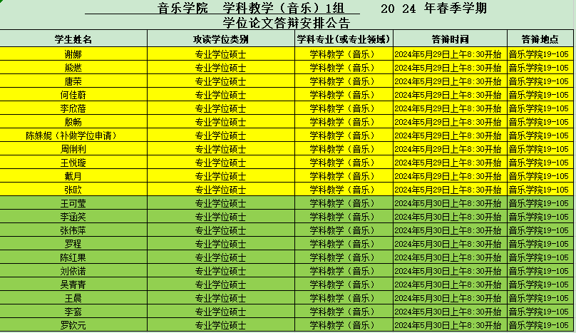 2024年西南大学365英国上市集团硕士研究生答辩安排——学科教学(音乐)组