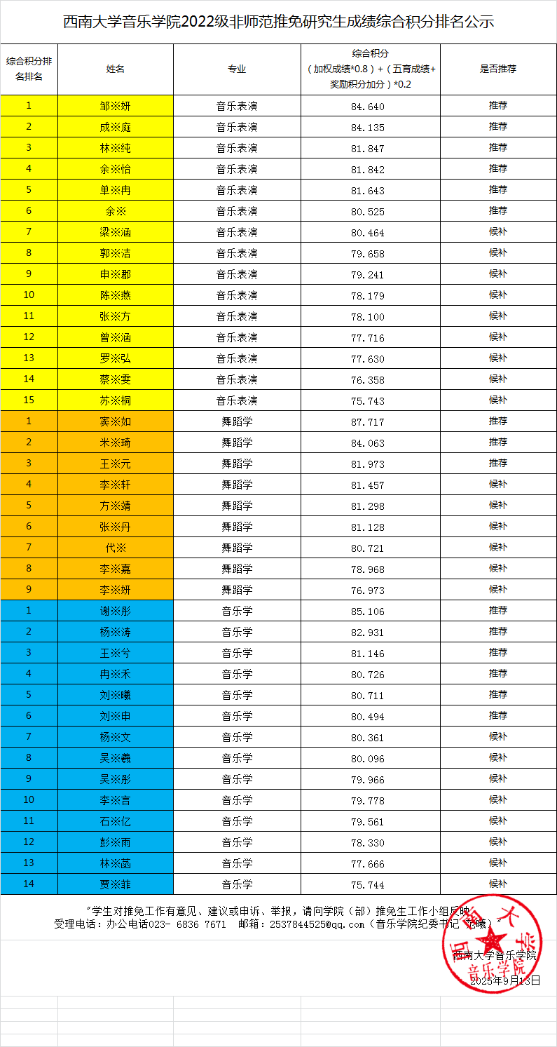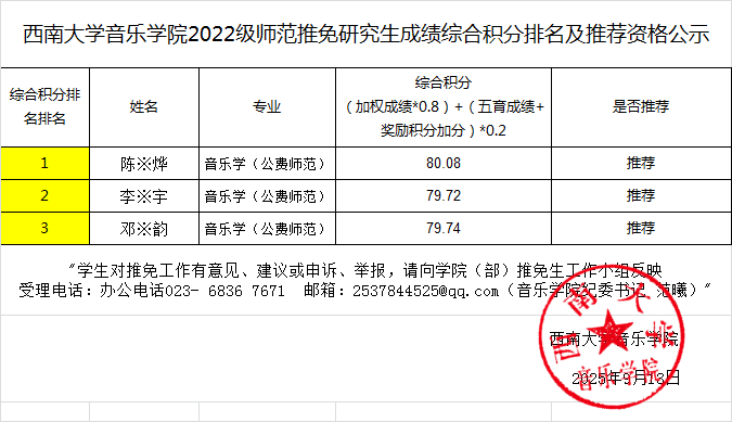 西南大学365英国上市集团2026年推免研究生公示