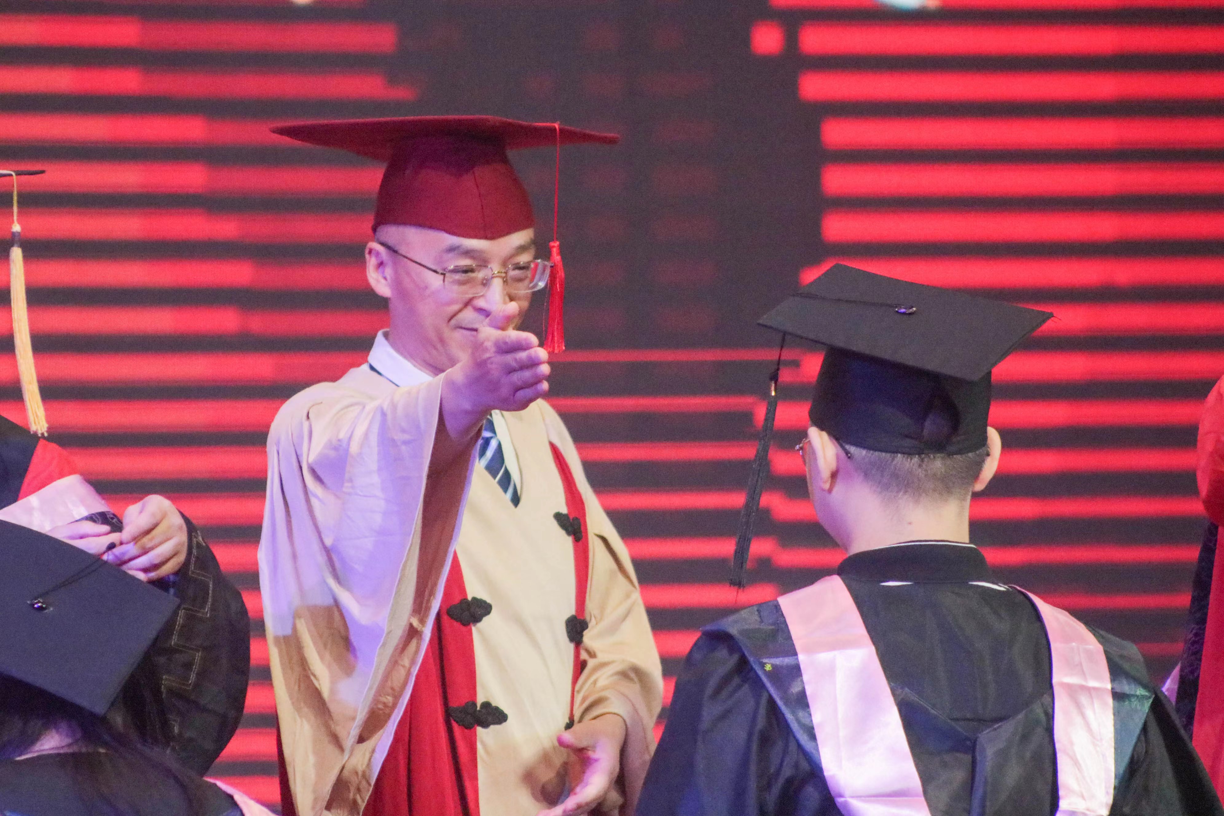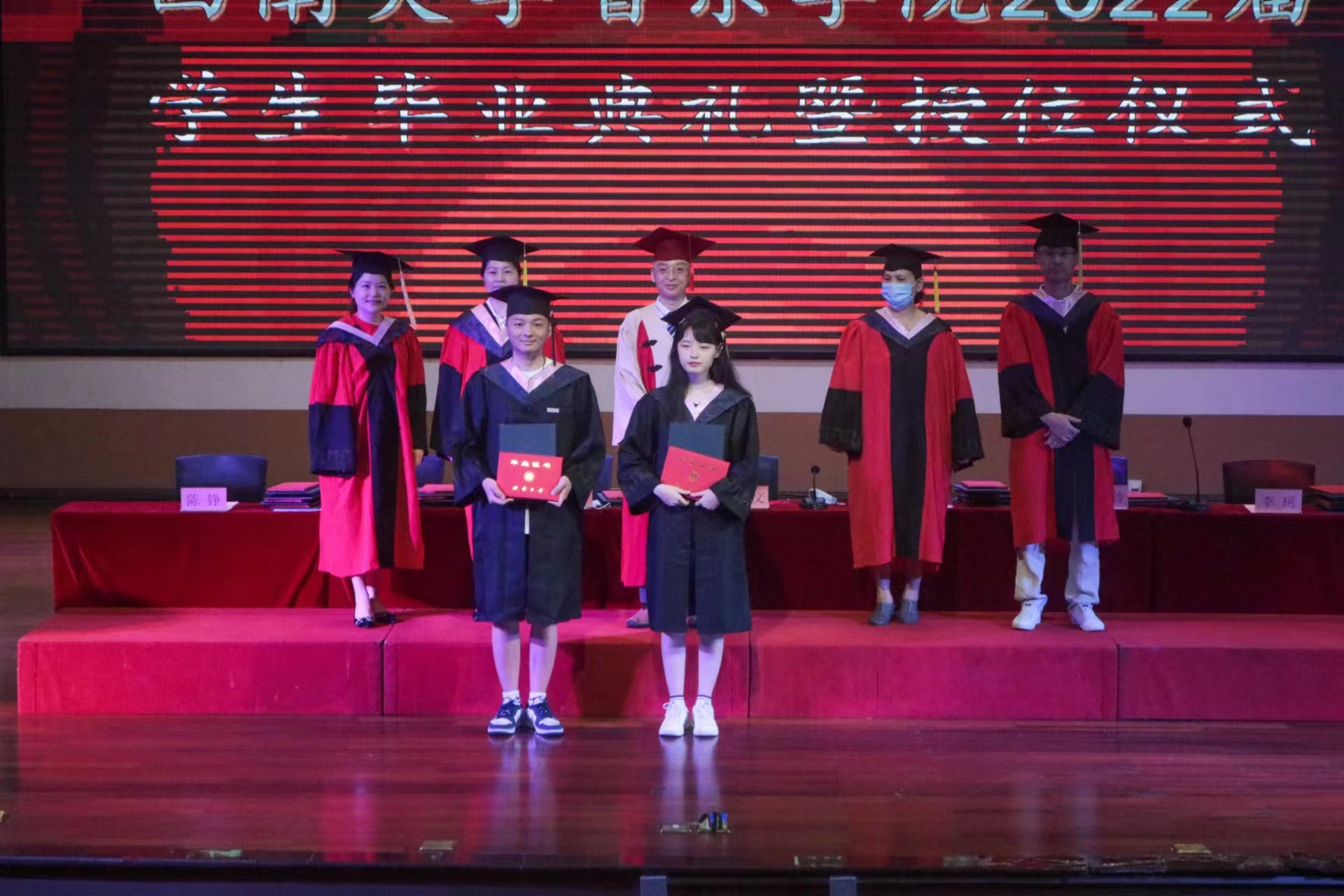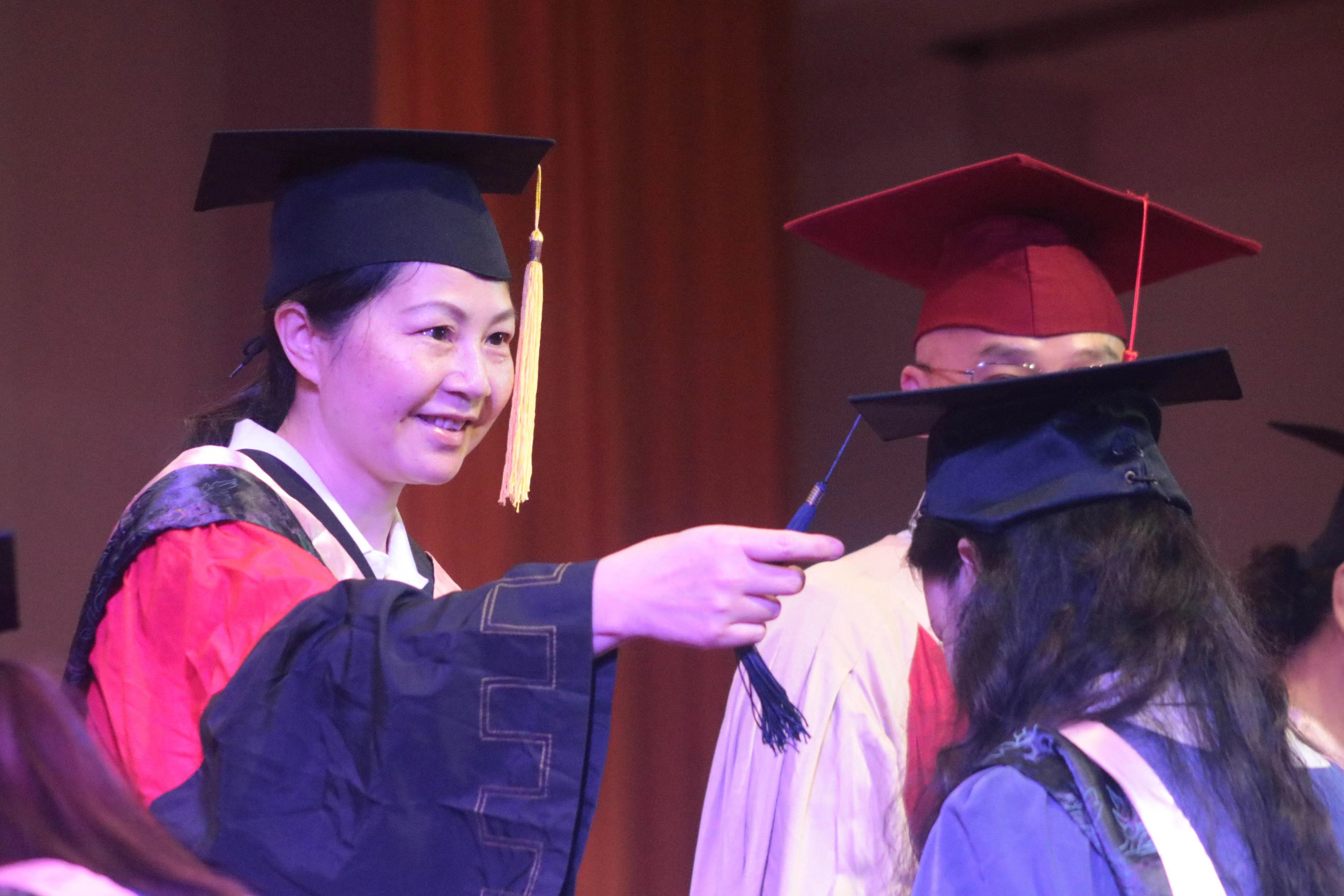 副院长陈若旭宣读《西南大学关于准予2022届本科生毕业及学位授予决定》。随后,在庄重欢快的进行曲中,全体学位委员会成员为2022届51名硕士毕业生和231名本科毕业生颁发了毕业证书和学位证书,并拨穗。