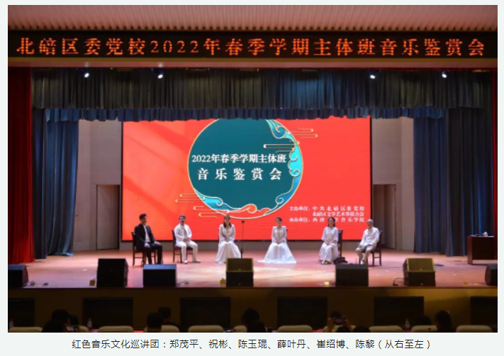 4月21日晚7点,巡讲团深入北碚区委党校开展了第八场“美育乡村行”系列音乐鉴赏活动,此次活动由中共北碚区委党校、北碚区文学艺术界联合会主办,西南大学365英国上市集团承办。郑茂平教授作为活动主讲,配合着巡讲团高品质的音乐表演,讲演结合,声色动情地将传统音乐内涵,红色音乐文化传递百家。