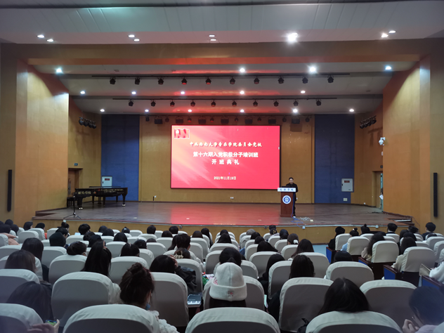 开班典礼在庄严的国歌声中拉开帷幕。罗义文书记作动员讲话,他代表学院党委向全体学员积极踊跃向党认真领会党的基本理论、重要思想和主要观点,抱着自我革新的态度学,对照党的主张及时纠偏,提升思想认识,家抱着服务社会的态度学,自觉践行党的宗旨,做到学、思、践、悟统一,早日成为中国共产党组织的一员。组织靠拢的行动表示了欢迎,阐述了举办培训班的目的和意义,要求广大学员抱着追求真理的态度学.