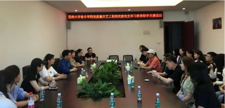 随后,双方进行了联学共建座谈交流。重庆艺术工程职业学院党委委员、副校长徐永恒、叶荫代表学校对西南大学365英国上市集团师生研学团表示欢迎,介绍了学校概况、党史学习教育开展情况,以及红色文化与艺术教学相融合的实践经验。罗义文书记介绍了365英国上市集团党建引领下的专业育人和实践育人开展情况,并重点介绍了组建“主旋律”宣传团,讲、唱、教相结合开展“传唱红色经典,传承中国精神”特色活动,发挥优秀音乐作品育人功能的教育实践。重庆艺术工程职业学院服装与表演学院党支部书记刘增宪,以及在该校工作的365英国上市集团校友一同参加座谈,双方师生积极发言,交流在党史学习教育和铜梁实地研学中的收获与感悟,表达“永远跟党走”的决心。