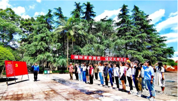 16日上午,在学院党委书记罗义文、副书记陈铮的带领下,研学团一行首先抵达位于铜梁安居古镇的刘雪庵音乐纪念馆。刘雪庵是著名的作曲家、音乐理论家、音乐教育家,是中国音乐民族化、大众化的重要奠基人,抗战期间,以“心的颤动”“灵的叫喊”,创作了《长城谣》,“流亡三部曲”之二《离家》、之三《上前线》等大量脍炙人口的歌曲,并为郭沫若的历史剧《屈原》谱写全部配乐和插曲。全体支委和“主旋律”宣讲团的成员们逐个橱窗认真学习刘雪庵在中国近现代音乐史上作出的贡献,了解一首首作品的创作背景,尤其看到那些充满爱国热情和艺术魅力的作品时,师生们不由得心情澎湃,跟着深情演唱起来,《长城谣》《追寻》《踏雪寻梅》等。动听的歌声引来纪念馆的工作人员和参观路人的驻足聆听,声声赞叹。