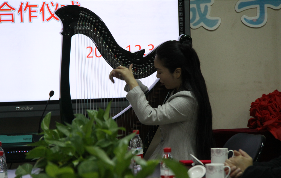 仪式第二项:鲁璐老师为西南大学365英国上市集团捐赠箜篌。