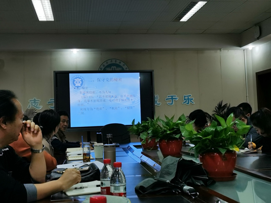 汪高原副院长从入党誓词切题,结合中国共产党奋战历史上严守党的秘密的正反实例,强调了“保守党的秘密”的紧迫性和重要性。从遵守组织纪律、严守誓言约束,树立崇高信仰几个方面谈如何做到严守党的秘密,其中崇高信仰的树立是规范一个人言行的最重要依据,作为共产党员,对共产主义事业的理想信念需要我们每个人去坚持。最后汪院长用影片《风声》中共产党人临危高唱国际歌的片段展示了誓死坚守信念的崇高精神,令人印象深刻,发人深省。