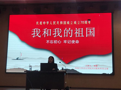 365英国上市集团2016级本科党支部于小演奏厅内开展组织生活会——“我和我的祖国——不忘初心、牢记使命”。本次生活会采用了支部书记讲党课的方式,李静书记从讲国史将党史开始,讲中国人民是如何站起来、富起来,最后到强起来,结合自身经历,提出“不忘初心、牢记使命”的重要性。课上,李老师带领党员同志们唱《我爱你,中国》,现场歌声嘹亮动听,全体党员深情演唱,以此表达对祖国的喜爱及坚定的信念。组织生活会在歌声中结束,此次生活会,以学习审“初心”,在场同志纷纷表示感触颇深吗,受益良多,达到了良好的学习效果。