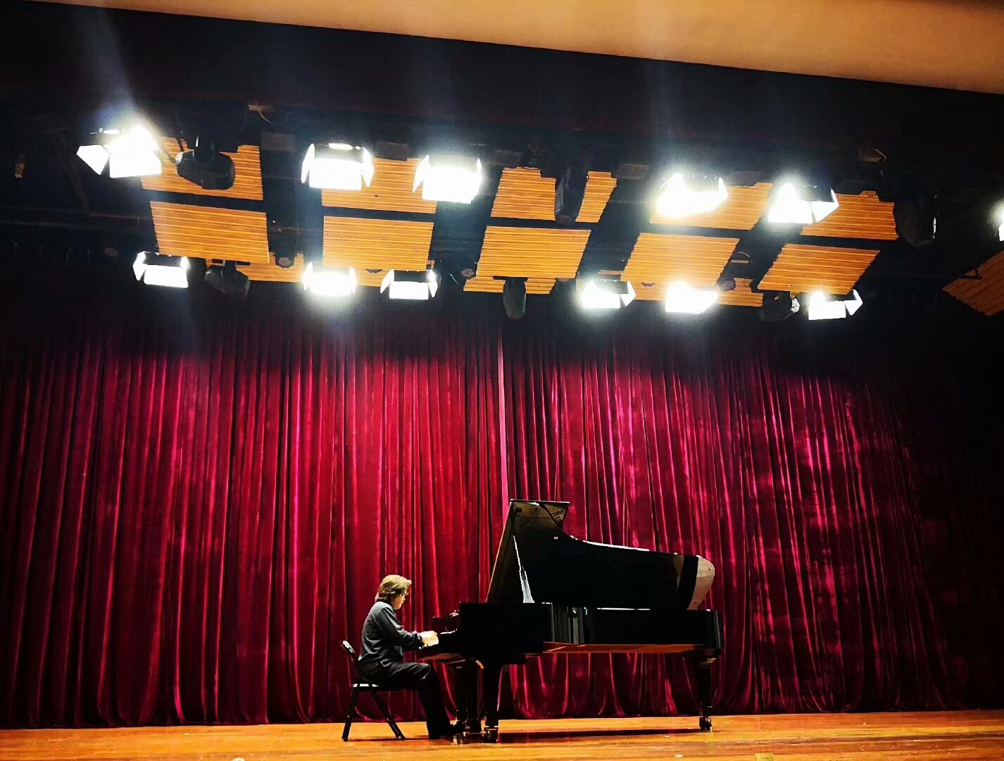 刘老师的独奏音乐会以四川籍作曲家黄虎威的《巴蜀之画》拉开序幕,这是一首由六首四川民歌构成的钢琴组曲,刘老师极富诗意的演奏,用音乐形象地描绘出巴山蜀水的优美风景,情感真挚、朴实;第二首是莫扎特D大调钢琴奏鸣曲K.576,刘老师的演奏细腻、风趣,音色清澈醇美,绚丽多姿;上半场的最后一首是带庄严行板的大波兰舞曲Op.22,刘老师将肖邦在现实与理想、欢乐与苦闷双重磨炼中的所思所感完美地呈现给了观众。下半场第一首是贝多芬的d小调钢琴奏鸣曲Op.31 No.2,整首奏鸣曲长达二十多分钟,刘老师淋漓尽致地体现出了贝多芬凌厉鲜明的风格;最后一首肖邦g小调第一叙事曲Op.23,刘老师用极富张力和弹性的演奏,表现出了肖邦音乐中的“英雄性”和“悲剧性”。音乐会在现场热烈的掌声与欢呼声中缓缓落下帷幕。