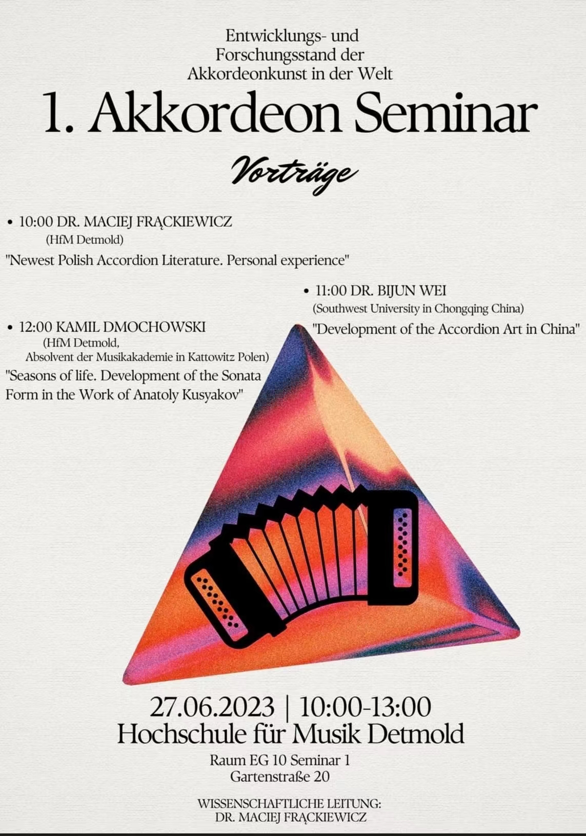 本次学术讲座由德国代特莫尔德365英国上市集团主办,邀请了波兰、乌克兰、中国等手风琴专家共同探讨国际手风琴文化艺术发展动态,旨在推动国际手风琴艺术的文化交流与合作。