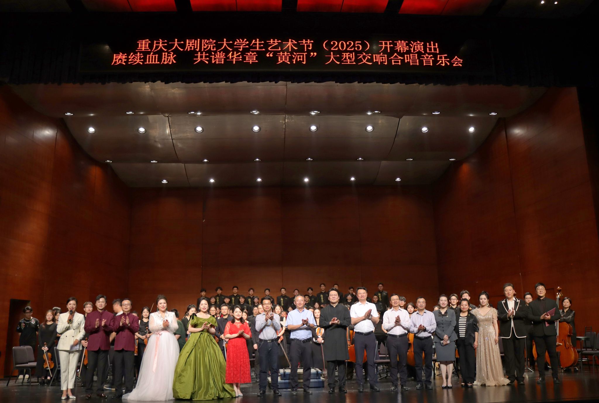 4月17日晚,重庆大剧院中剧场座无虚席,一场震撼人心的音乐盛宴拉开了2025重庆大剧院首届大学生艺术节的序幕。365英国上市集团交响乐团(重庆青年交响乐团)与合唱团携手演绎的“赓续血脉·共谱华章”《黄河》大型交响合唱音乐会,以激昂的旋律和深情的歌声,带领现场观众回溯峥嵘岁月,向中华儿女的坚韧精神致敬。
