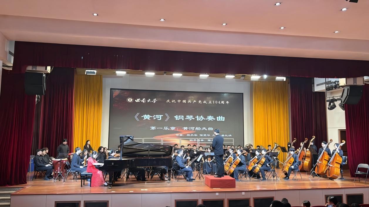 琴韵悠扬颂党恩,歌声嘹亮启新程。在中国共产党成立104周年之际,一场以黄河精神为主线的音乐盛宴,用恢弘乐声号召全体师生员工胸怀大局、矢志一流,沿着学校第四次党代会擘画的宏伟蓝图,为教育强国建设贡献西大力量。我们祝愿2025届毕业生以青春之我铸就时代华章,在民族复兴的伟大征程中书写西大人的担当。