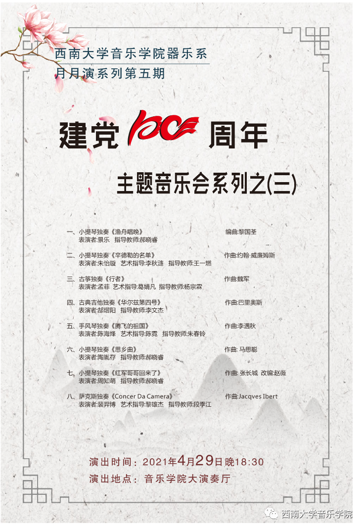 器乐系月月演 | 庆祝建党100周年主题音乐会系列