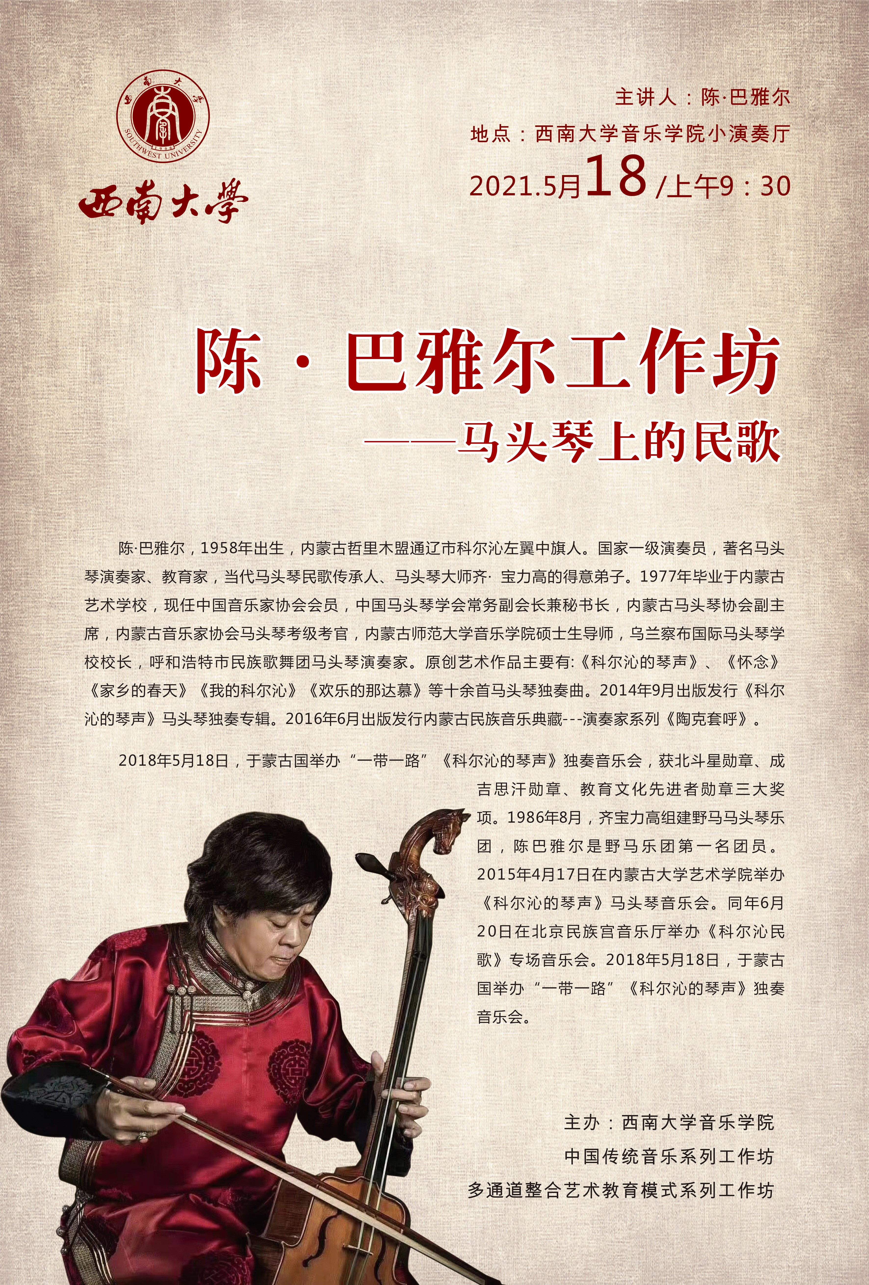 【5月18日】陈·巴雅尔工作坊预告——马头琴上的民歌