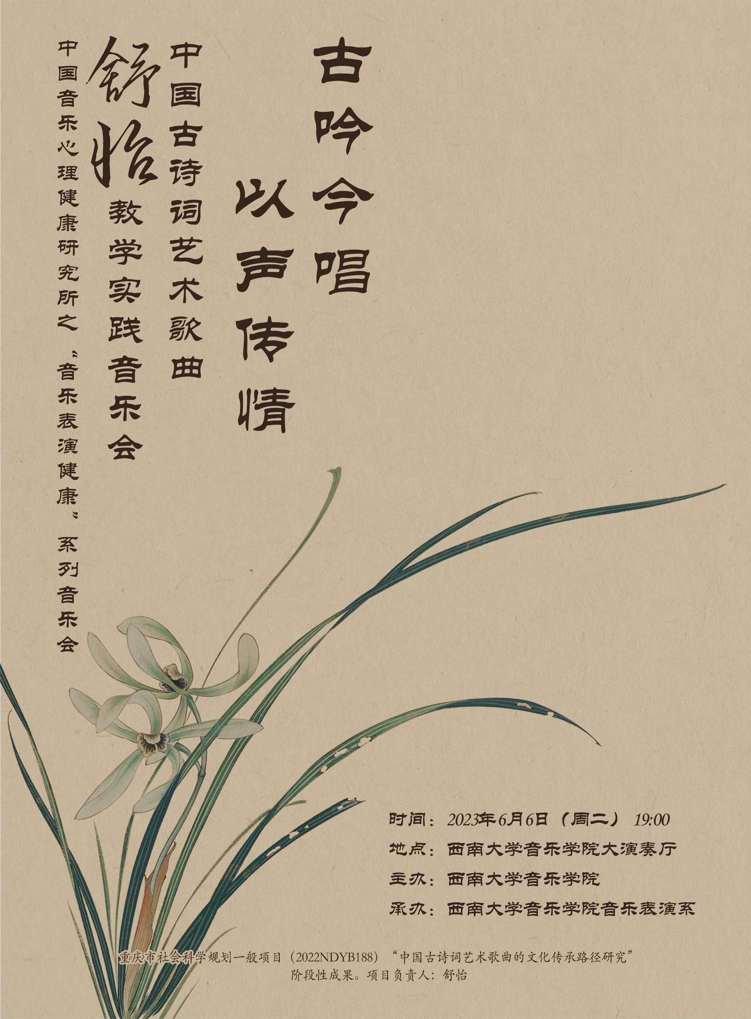 预告|6月6日 “古吟今唱,以声传情”中国古诗词艺术歌曲 舒怡音乐教学会