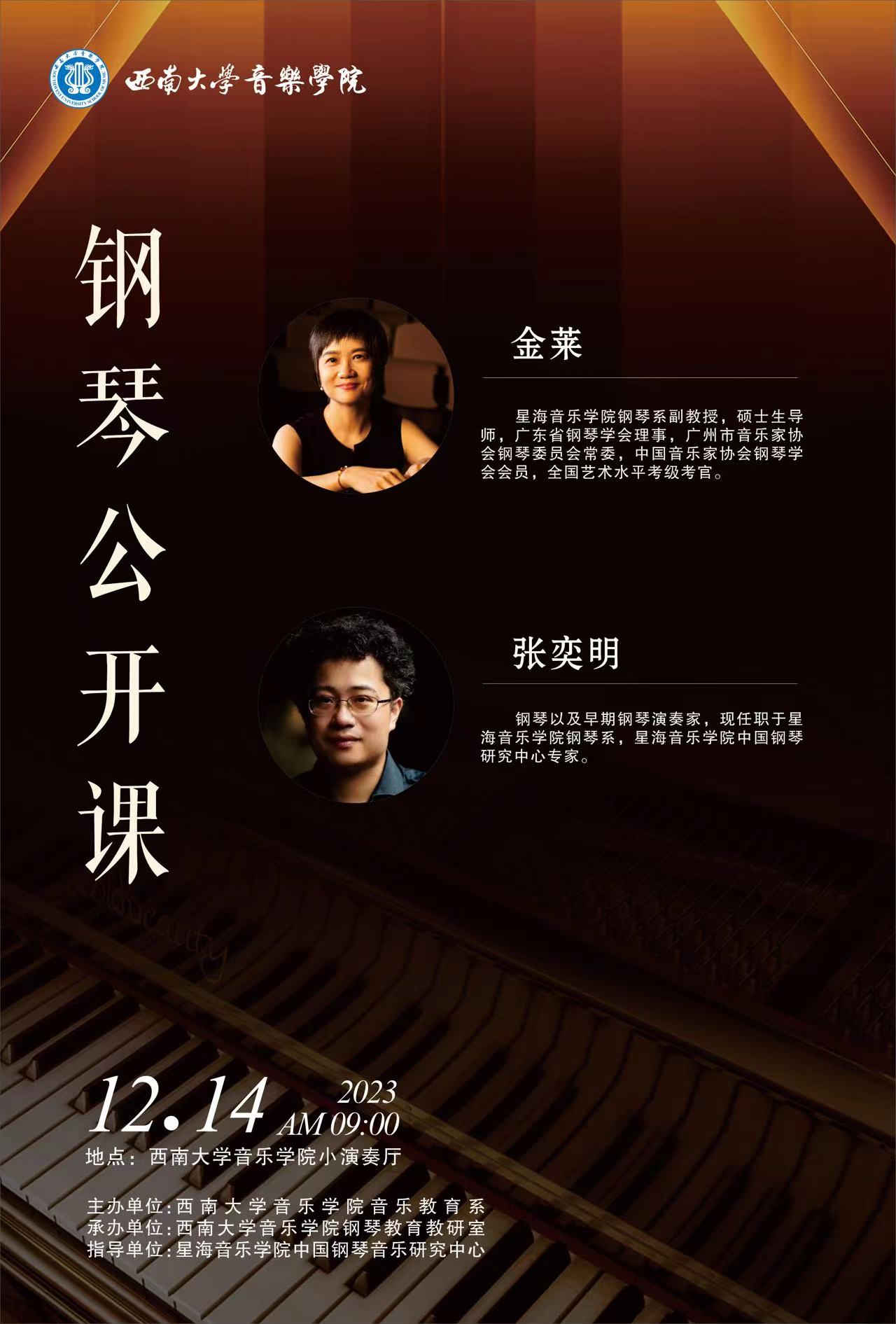 预告|12月14日9:00 金莱、张奕明钢琴公开课