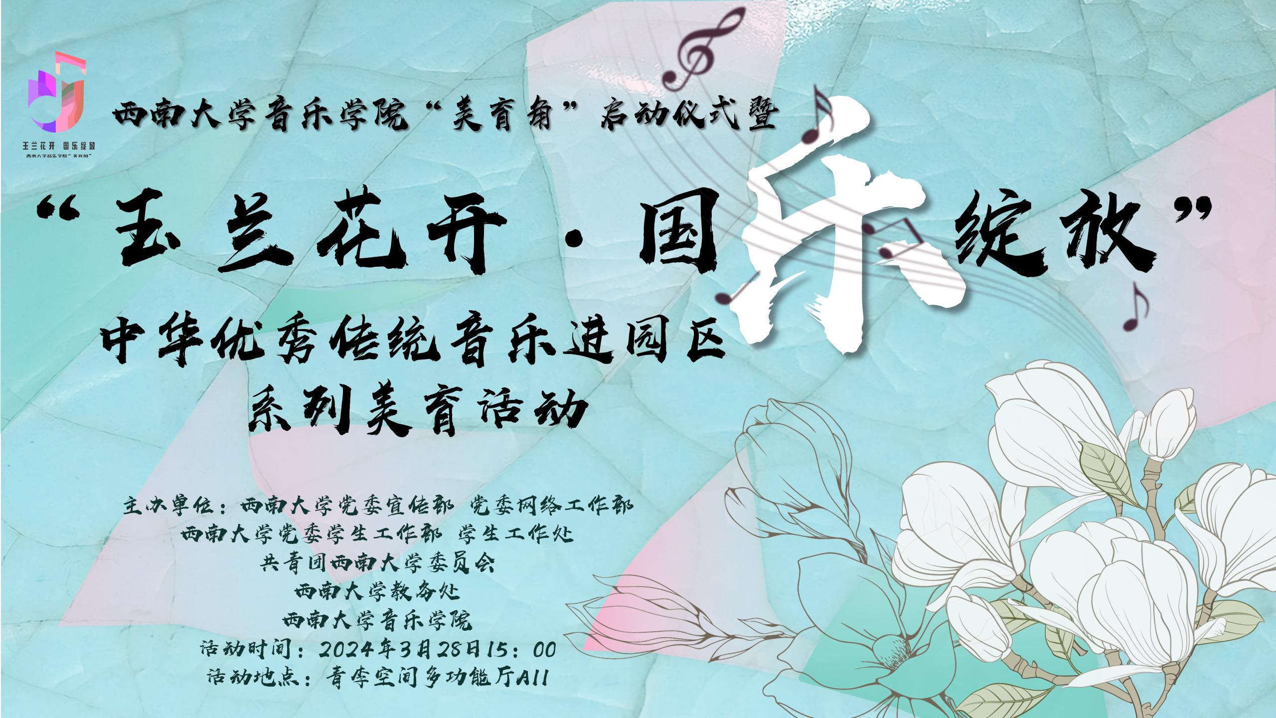 预告| 3月28日15:00【玉兰花开·国乐绽放】中华优秀传统音乐进园区系列美育活动