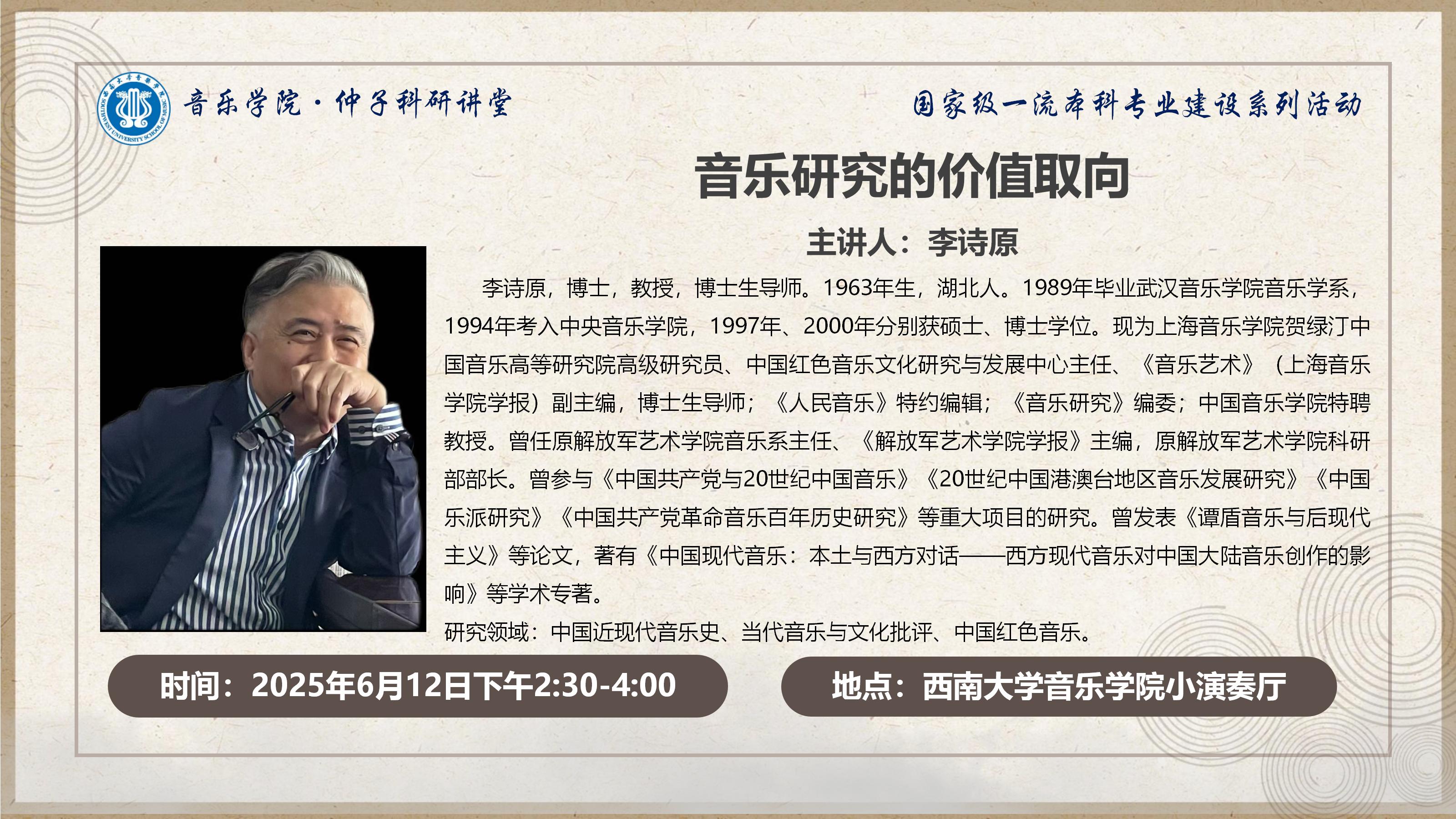 预告|6月12日李诗原《音乐研究的价值取向》
