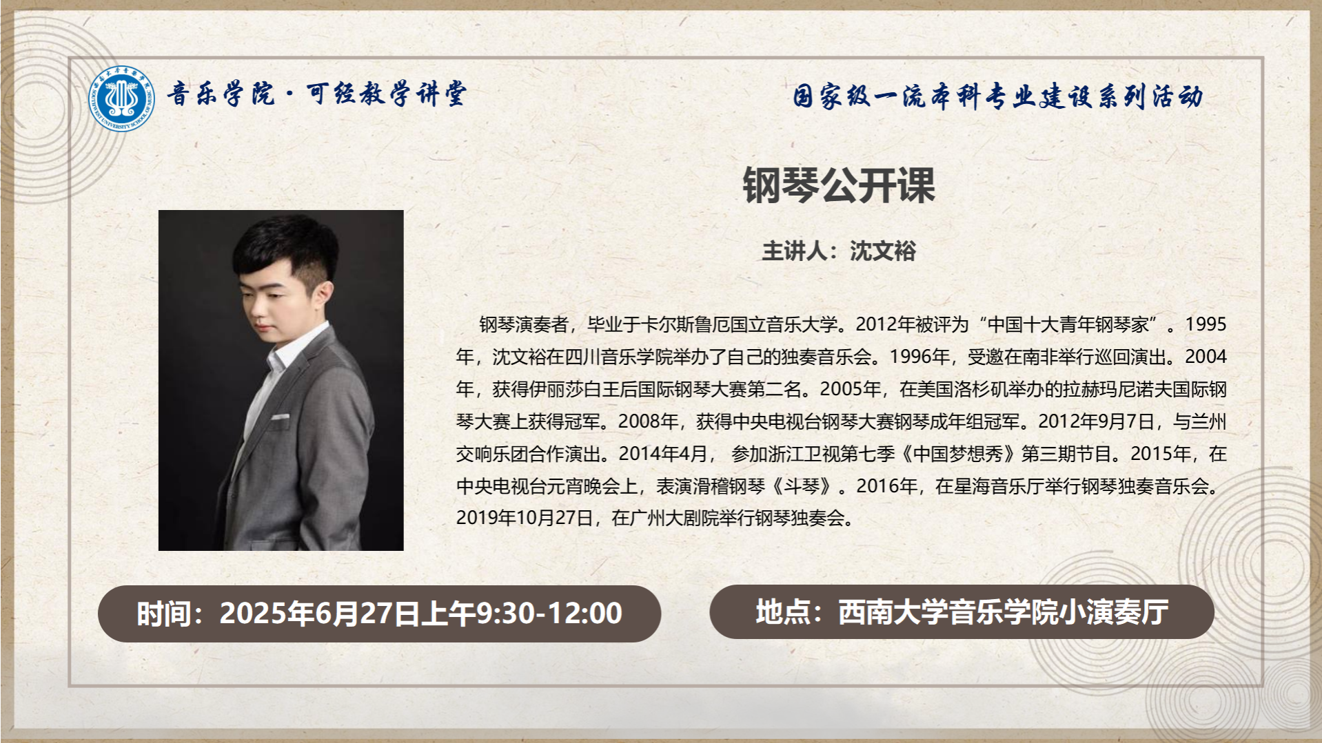 预告|可经教学讲堂:6月27日 9:30 沈文裕钢琴公开课