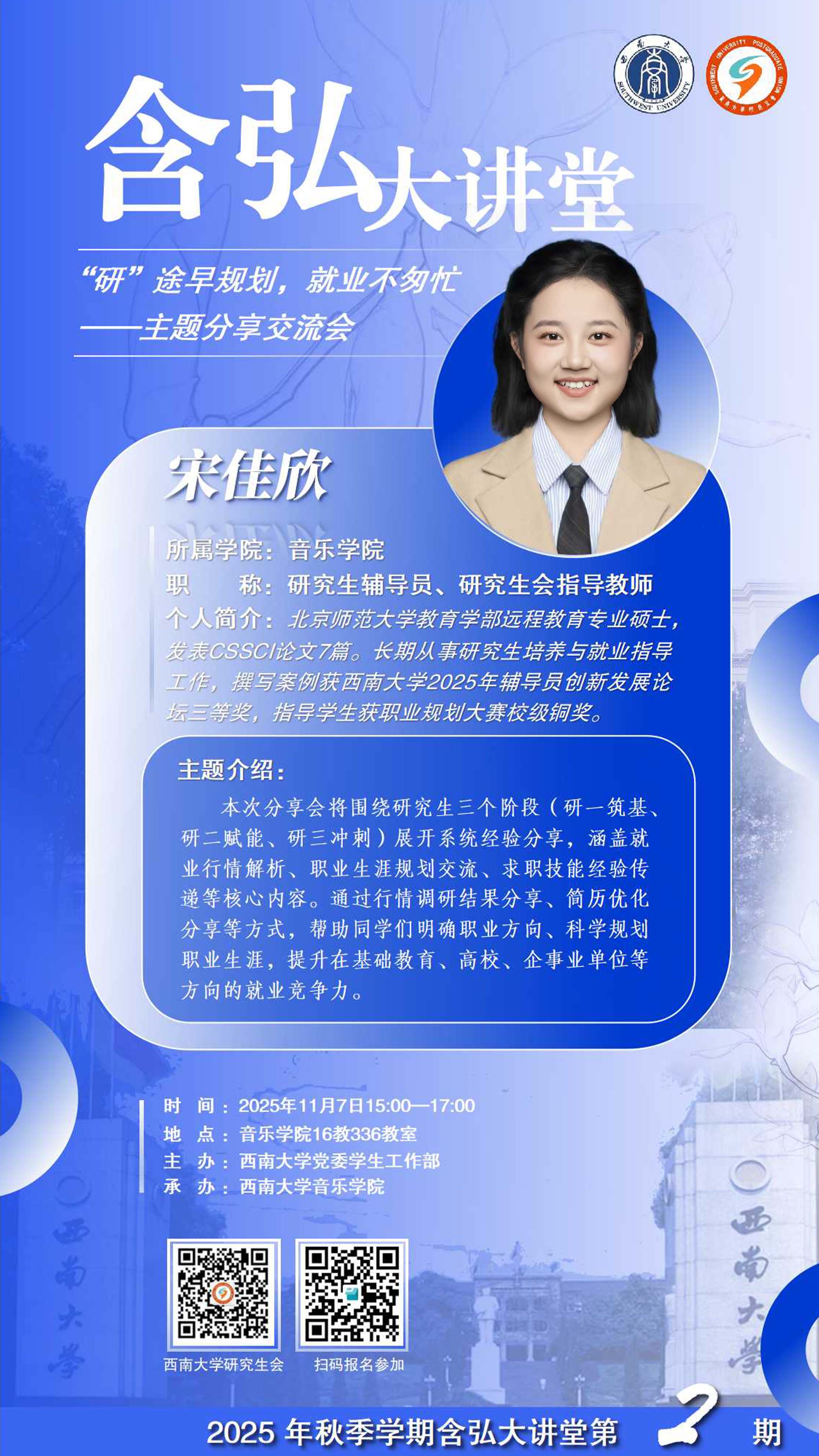 预告 | 11月7日15:00 含弘大讲堂:“研”途早规划,就业不匆忙——主题分享交流会