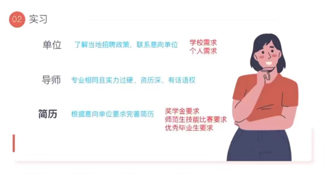 两位学姐分享结束后,李玮彦老师总结到:“学霸是‘规划’出来的——清晰的目标、科学的规划、奋力地奔跑、并坚定地执行。”在李老师的引导和鼓励下,同学们踊跃发言、积极讨论。大家分别就专业比赛、教师技能大赛、对未来感到迷茫等问题向李老师寻求答疑解惑,吴静茹老师也替同学们询问师范生毕业后的硕士申请事项。宣传委员杨家妮同学说:“听了学姐们的分享,作为公费师范生的我们,更应该积极的找准定位,吸取他们的工作经验,与自己心仪的学校双向奔赴。”