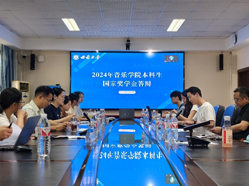 为激励学生勤奋学习、努力进取,德智体美劳全面发展,贯彻落实学院“五大育人计划”根据《西南大学本科生国家奖学金实施办法》(西校[2021]94号]),9月27日14点30分,学院在105会议室举行2024年本科生国家奖学金评审答辩会。院长胡晓东、学院党委副书记、纪委书记范曦、副院长黄君、陈若旭、钢琴教育教研室主任胡雷、声乐表演教研室主任张珂、声乐理论教研室主任万欣、舞蹈学系系主任戴钦、辅导员杜和军、黄垭飞、吴静茹以及16名候选同学参加会议,20余名本科学生到会观摩学习。答辩会由学院党委副书记、纪委书记范曦主持。