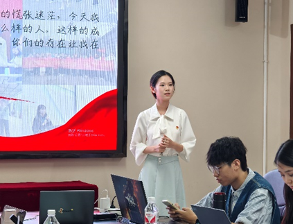 会上,学院党委副书记、纪委书记范曦就学校国奖评审的文件要求、评审流程、评选指标以及择优选优、全面发展的育人导向进行说明,介绍学院2024学年国家奖学金评选工作的总体情况。她指出,本次评审工作按照“符合条件学生申请——学院初审——个人PPT陈述——现场审查材料——专家提问作答——评审小组决议并投票——集中公示”的流程进行,坚持择优选拔、公平公正以及兼顾专业年级结构分布的原则,严格按照评审条件和标准做好本次评审工作。