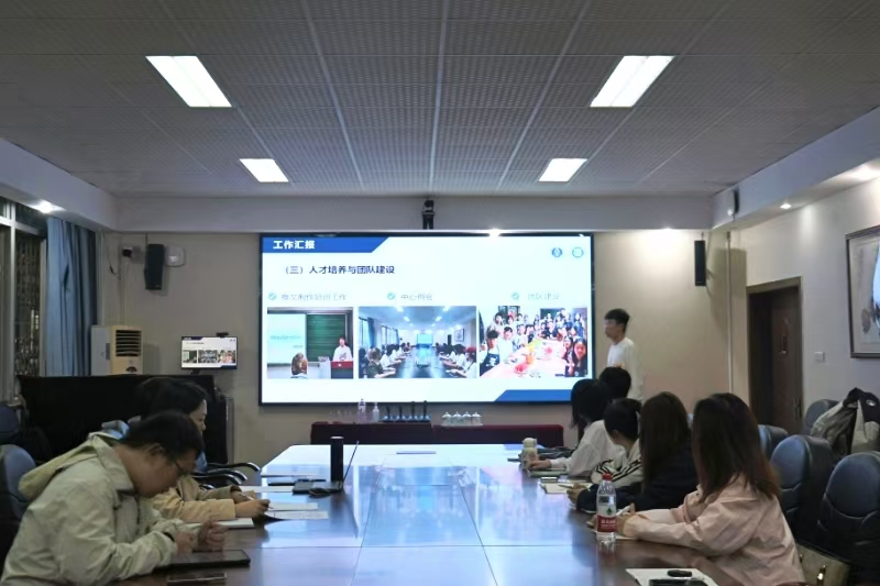 黄垭飞老师介绍了新媒体运营中心组织架构与基本情况,张靖唯同学梳理了新媒体运营中心过往工作成效,介绍了中心未来将持续围绕栏目建设、人才培养与成果孵化三个方面进行优化的工作计划。张锦涛对中心的审核制度和人员构成进行了简要说明,阐述了推文发布前审核的具体流程与标准。