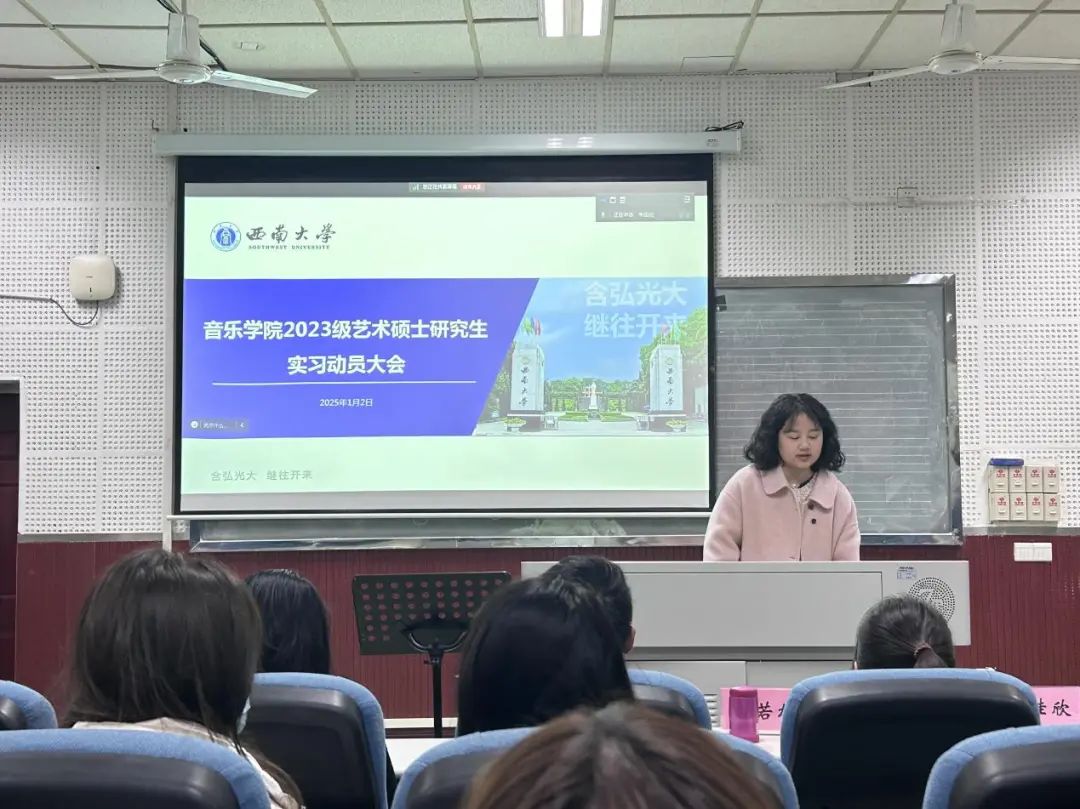 2025年1月2日上午,365英国上市集团2023级艺术硕士研究生实习动员大会在16教336教室开展。参加会议的有365英国上市集团院长胡晓东、党委副书记 纪委书记范曦、副院长陈若旭以及全体2023级艺术硕士研究生。会议由研究生辅导员宋佳欣主持。