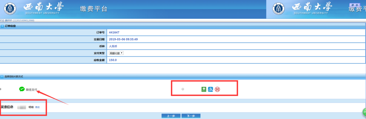 (若需要发票信息可确认左下方“发票信息”中修改)