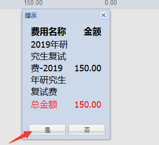 第2步:点击左上方“费用支付”界面,在费用项列表内选中(打勾)“研究生复试费”,点击右下方“支付按钮”。