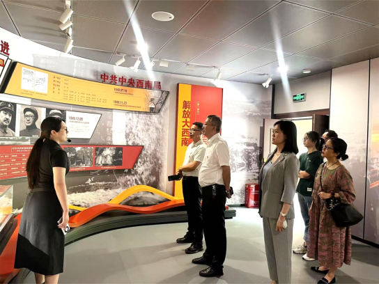 在解说员带领下,大家走进《开创新局——中共中央西南局历史陈列》展览,随着时间脉络,对中共中央西南局1949年10月到1954年4月期间在西南地区的解放和管理工作听取讲解。通过观看历史图文资料、警示名言和体验式互动等方式,对四个单元、10个展厅的内容进行逐一学习、认真交流。