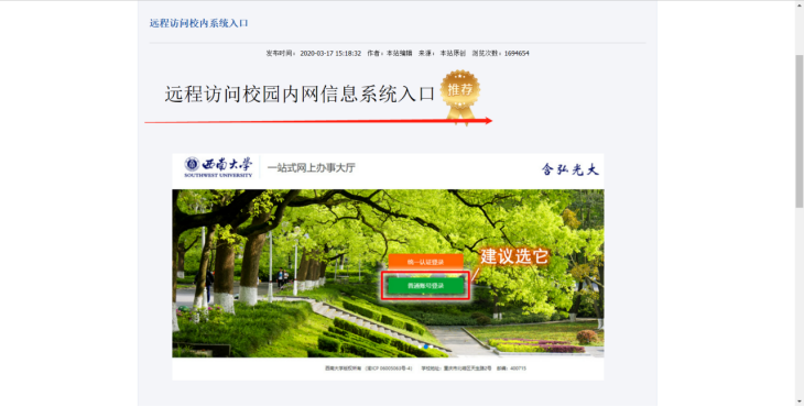 1.登录西大vpn,点击“远程访问校内系统入口”→远程访问校内网信息系统入口