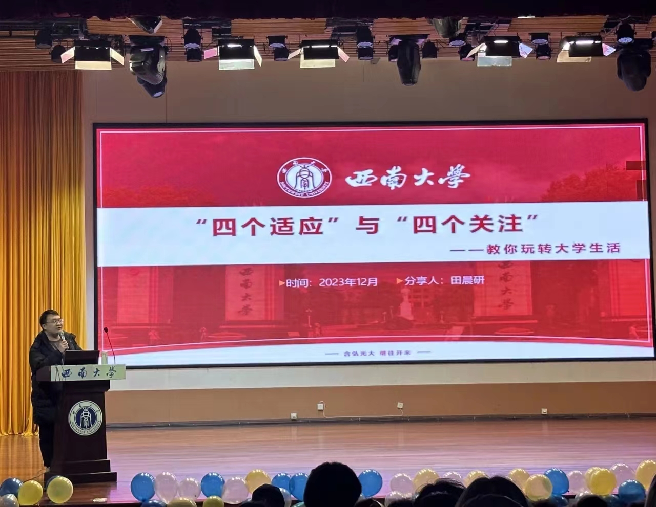 为加强学风建设,引导2023级新生“追光而行,砥砺前行”。12月7日,我院邀请五位本科生国奖获得者在大演奏厅为新生分享大学规划、学习心得、专业技能、创新创业、综合发展等内容,激励全体新生踔厉奋发、勇毅前行。