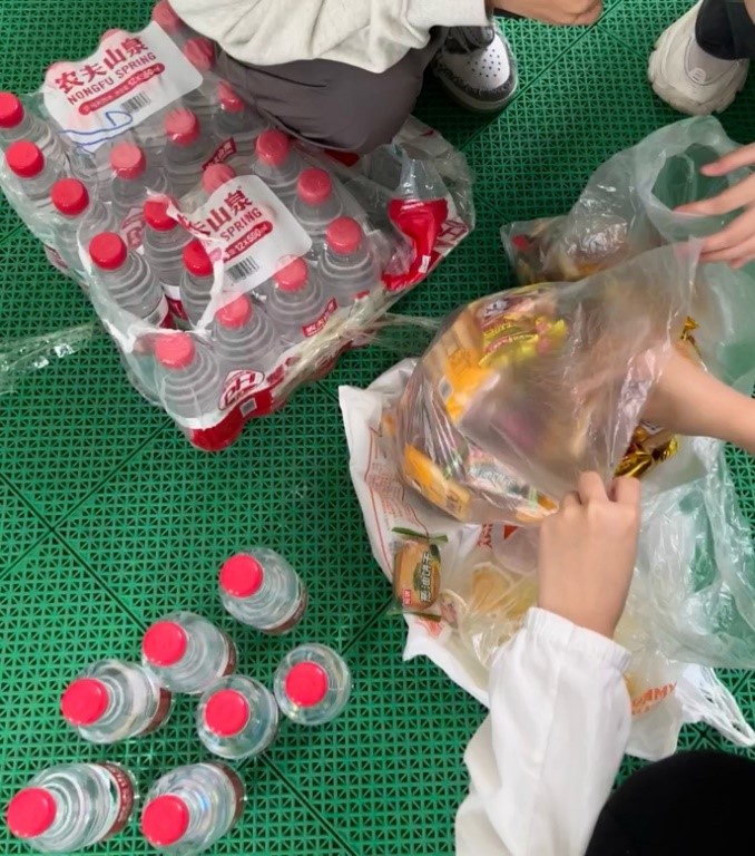 在活动开始前,班委为同学们准备了水和零食,让同学们在活动空闲时间可以自助领取,补充能量。