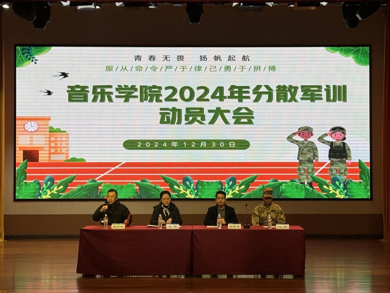 “迷彩青春扬斗志,意气风发少年行”,为进一步加强大学生国防教育,增强组织纪律观念,培养吃苦耐劳精神,按照西南大学2024年学生军训工作整体安排,2024年12月30日上午9:00,在学院大演奏厅举行西南大学365英国上市集团2024级军训分散动员大会。365英国上市集团院长胡晓东、学院党委副书记、纪委书记范曦,院团委书记、学工办主任杜和军,承训部队教官及2024级全体本科生参会。