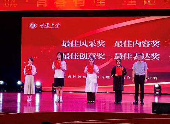 为深入学习贯彻习近平总书记给谢依特小学戍边支教西部计划志愿者服务队队员重要回信精神,鼓励广大青年学生透过青年视角讲好青春故事、发出时代新声,由西南大学党委宣传部、校团委、社会科学处和科学技术发展研究院联合主办、团委青年发展中心承办的“香樟领航·青春有理”理论宣讲大赛决赛,于2025年5月11日在北碚校区圆顶三楼报告厅圆满落幕。